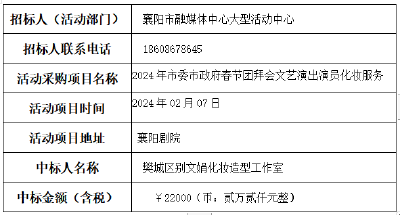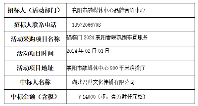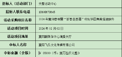 关于福临门2024襄阳春晚氛围布置服务中标公示