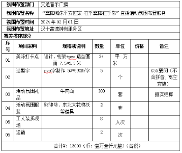 关于公开采购福临门2024襄阳春晚氛围布置服务...