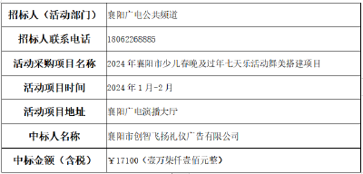 关于公开采购2024年襄阳市少儿春晚及过年七天...