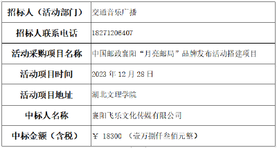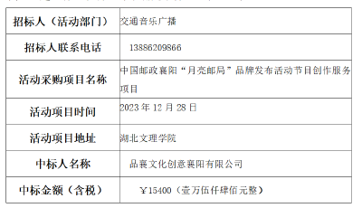 关于公开采购中国邮政襄阳“月亮邮局”品牌发...