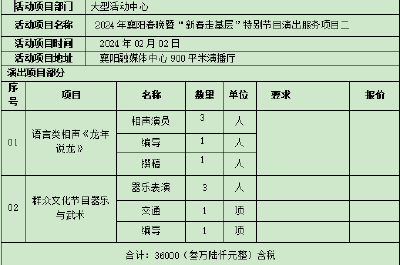 关于公开采购2024年襄阳春晚暨“新春走基层”...