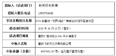 关于公开采购2020襄阳“市民问政” 舞美设计制作搭建项目的公告