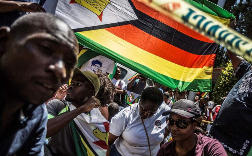 当地时间2017年11月18日,津巴布韦哈拉雷,民众举行游行反对总统穆加贝,要求其辞职下台。