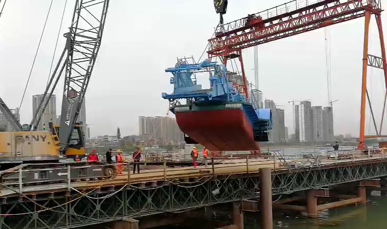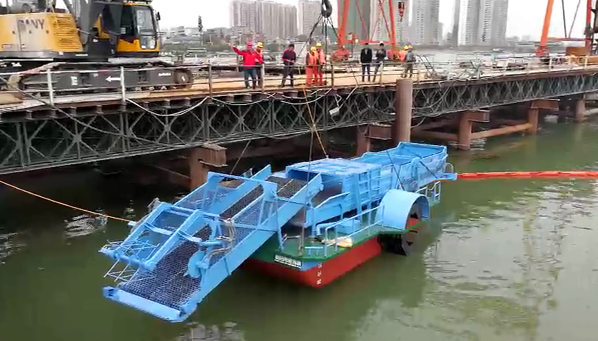 近日,一台大型全自动清漂船从汉江庞公大桥施工临时通道上缓缓吊入汉江,停靠在闸口码头,从此保护汉江襄阳段和唐白河、小清河等通江水域水质,又多了一个清漂利器。