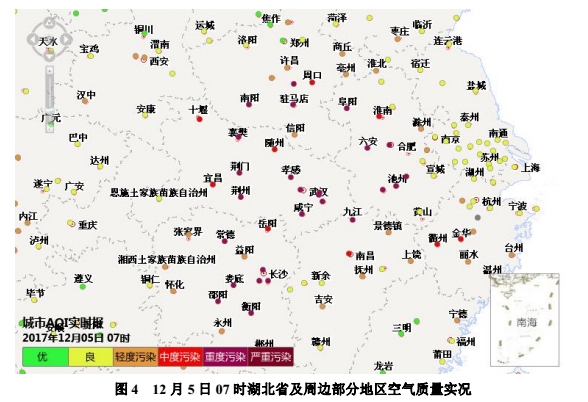 另据全省监测数据显示,受外来污染输入影响,我市和孝感、武汉的空气质量均持续处于重度及以上污染水平,首要污染物为 PM 2.5。不过,从我省周边看,随着冷空气的到来,河南、陕西、湖南、江西的等地的污染已趋于缓解。