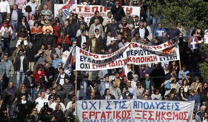 14号,希腊两大工会 “希腊全国公职协会”和“希腊全国劳工总会”在首都雅典发起了24小时全国总罢工,抗议欧盟等国际债权人继续要求希腊实施财政紧缩措施。