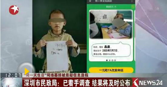 近日,网上出现“同一天生日”网络募捐活动,被疑造假、信息有误。深圳市民政局今日在官方微博通报,12月25日上午,深圳市民政局调查组约谈了深圳市爱佑未来慈善基金会秘书长,责令其立即停止“同一天生日”网络募捐活动,并要求向深圳市民政局提交募捐活动情况报告、与相关企业的合作协议及所有公开发布的文件资料。相关调查将继续进行。