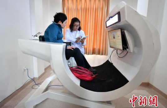 在福建中医药大学国医堂内,一个诊室的设备格外特别,进诊室中的设备前,需先建立档案选择中医体检或西医体检,后在该设备中进行状态辨识、风险评估,这个设备被医师们称为“中医健康管理太空舱”。