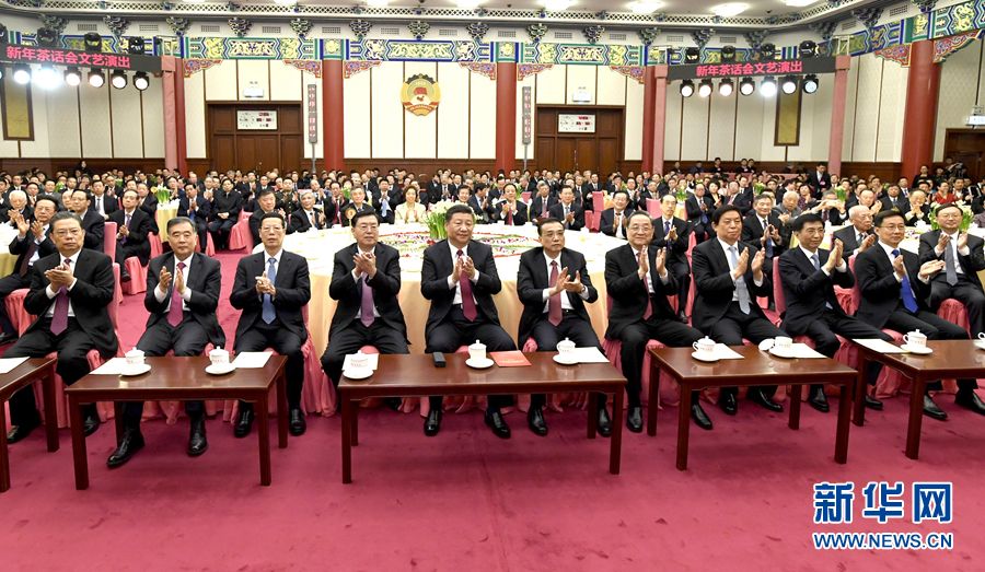 12月29日,全国政协在北京举行新年茶话会。党和国家领导人习近平、李克强、张德江、俞正声、张高丽、栗战书、汪洋、王沪宁、赵乐际、韩正出席茶话会并观看演出。