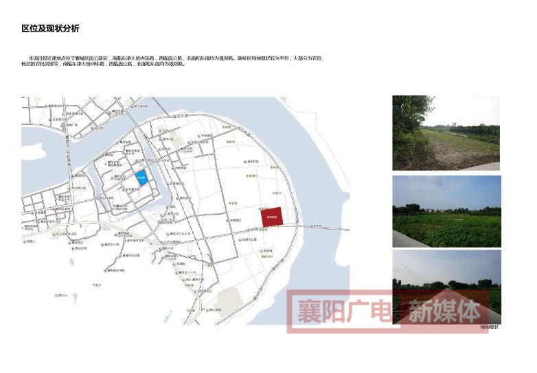 襄阳四中新校区位于襄城区庞公新区,这里东临汉江,西望岘山,南临内环南线,距东津大桥仅有500米,西临庞公路,北面为规划即将建设的道路。