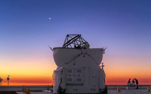 欧洲南方天文台(ESO)日前在网站上发表了一张智利帕拉纳天文台黄昏时分的美景,夕阳西下,蓝天与红霞在天边交汇,远处的天空中,金星如银点般静静地闪耀,似与地面上硕大的天文台望远镜“窃窃私语”。