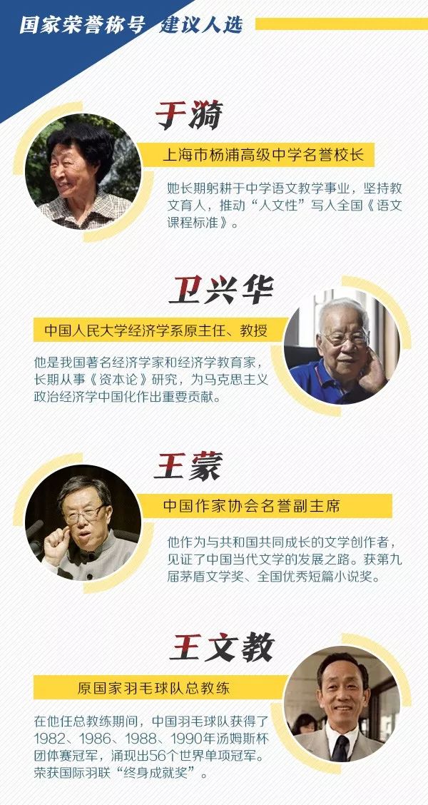 ——中华人民共和国成立后获得国家级表彰奖励及以上荣誉并健在的人员;