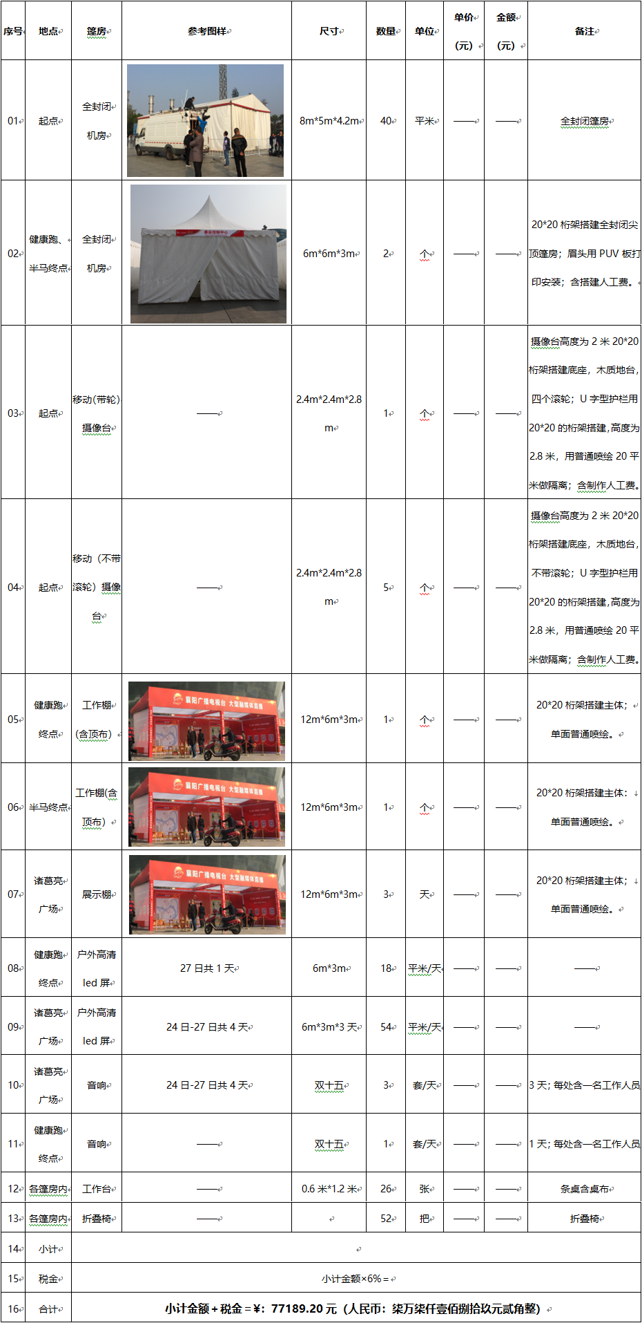 例如:《2019襄阳马拉松赛技术篷房及融媒体直播互动区》搭建项目 + XXXX公司