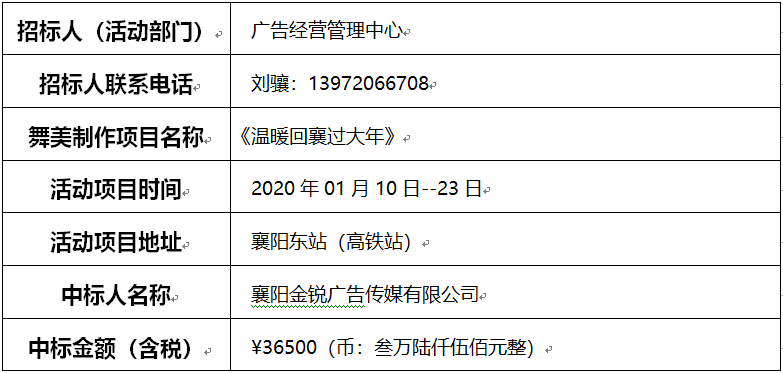 尊龙凯时人生就是博活动采购专班、广告经营管理中心负责人,在“三重一大”监督人员监督下,和供应商代表一起开标、议价,评审确定中标人,现公示如下: