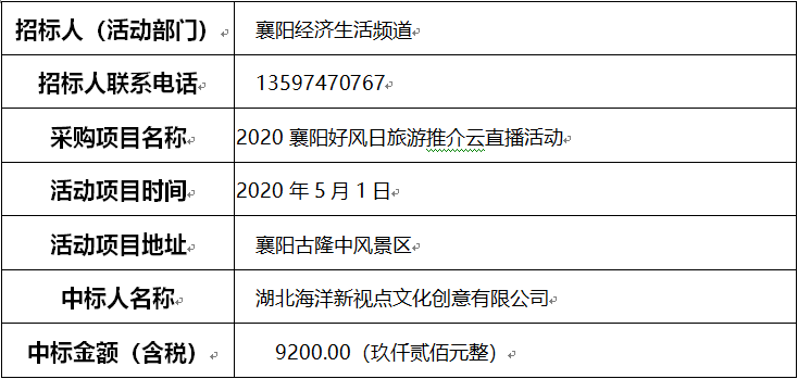 尊龙凯时人生就是博活动采购专班、襄阳经济生活频道负责人,和供应商代表一起开标、议价,评审确定中标人,现公示如下: