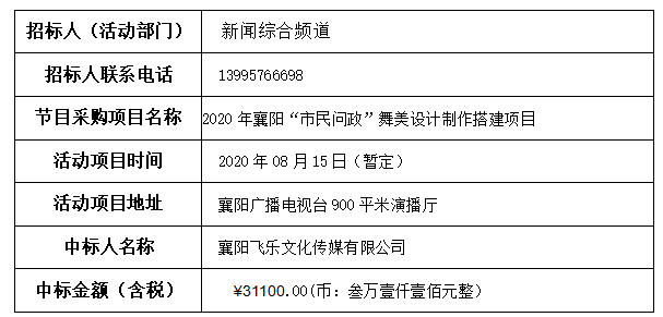 尊龙凯时人生就是博活动采购专班、新闻综合频道负责人,在“三重一大”监督人员监督下,和供应商代表一起开标、议价,评审确定中标人,现公示如下: