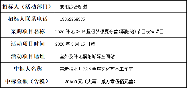 尊龙凯时人生就是博活动采购专班、襄阳综合频道负责人,和供应商代表一起开标、议价,评审确定中标人,现公示如下: