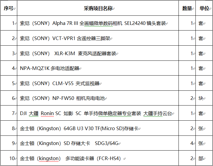 襄阳广播电视台因工作需要,拟向社会公开采购前期摄录相关配件: