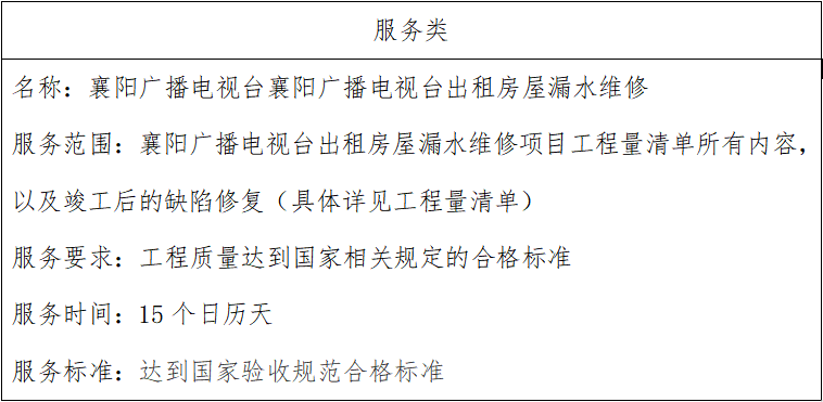 二、项目名称:襄阳广播电视台出租房屋漏水维修
