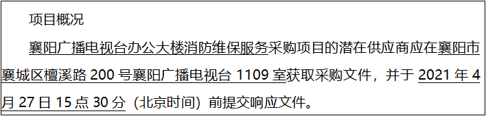 1、项目名称:襄阳广播电视台办公大楼消防维保服务