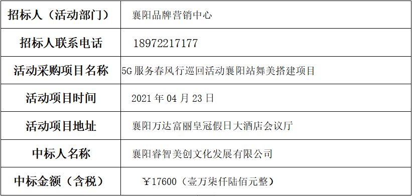 尊龙凯时人生就是博活动采购专班、襄阳品牌营销中心负责人,在“三重一大”监督人员监督下,和供应商代表一起开标、议价,评审确定中标人,现公示如下: