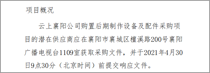 2.项目名称:云上襄阳公司购置后期制作设备及配件