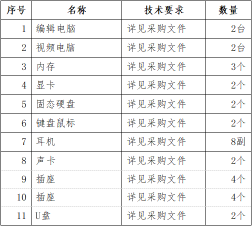 6.采购需求:云上襄阳公司购置后期制作所需的包装剪辑专用设备及配件(详见采购文件)