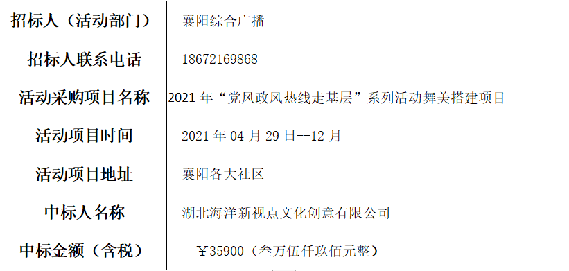 尊龙凯时人生就是博活动采购专班、襄阳综合广播负责人,在“三重一大”监督人员监督下,和供应商代表一起开标、议价,评审确定中标人,现公示如下:
