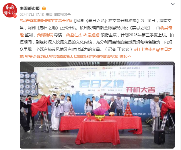 ■ 由襄阳籍演员袁姗姗领衔主演的网剧《春日之地》已于2月15日正式开机?。