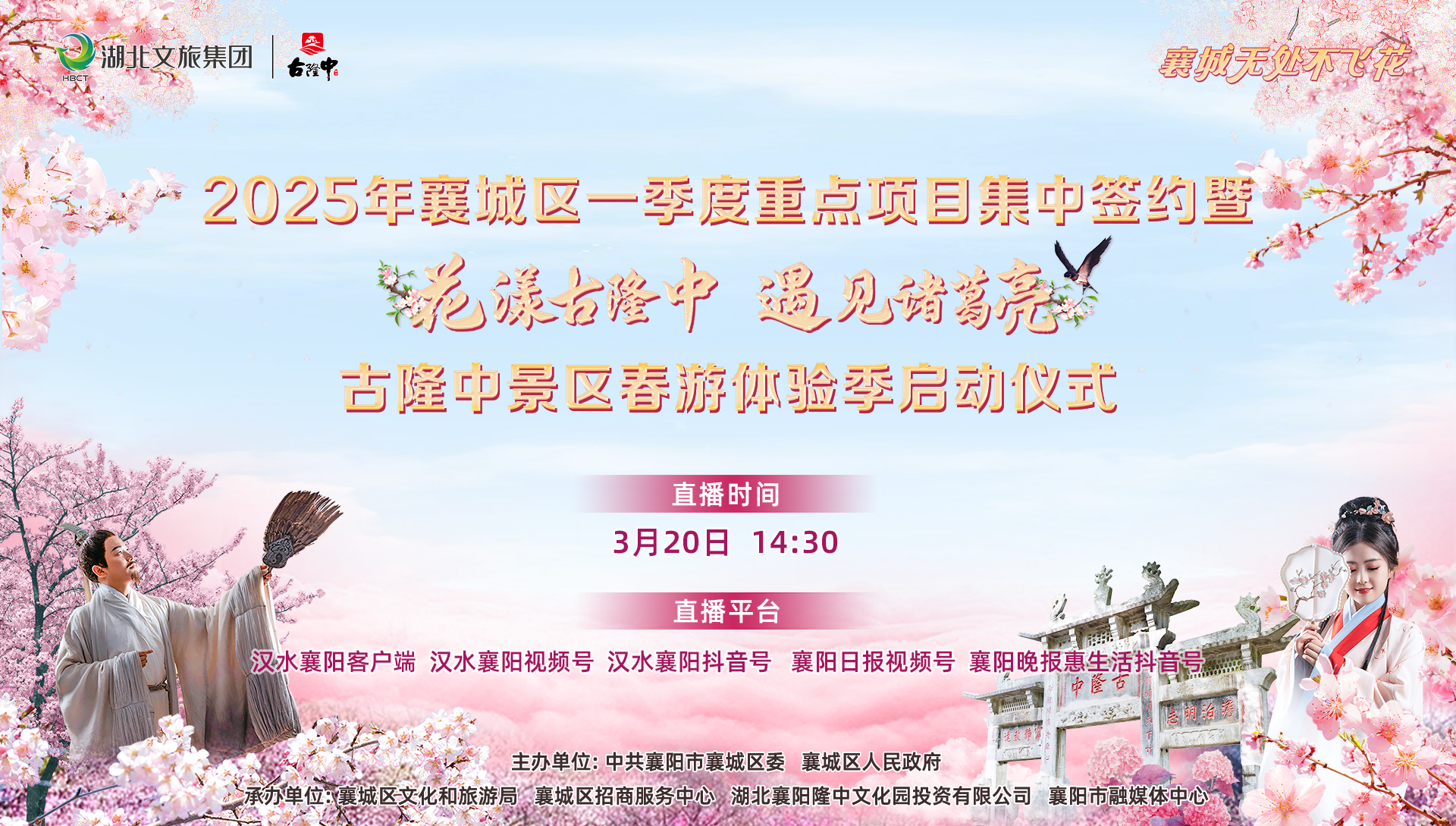 ■ 今天,襄城区将在古隆中牌坊广场举行“襄城无处不飞花”——2025年襄城区一季度重点项目集中签约暨“花漾古隆中·遇见诸葛亮”春游体验季启动仪式。【阅读详情】