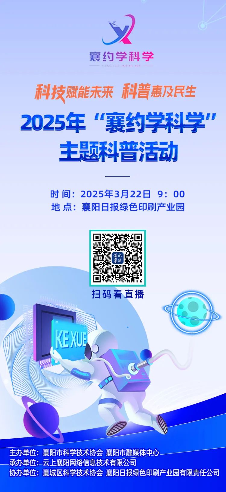 ■ 2025“襄约学科学”主题科普活动将于明天上午9:00举行,活动以“科技赋能未来,科普惠及民生”为主题,通过丰富多彩的科普活动,让科学走进生活,让创新点亮未来。