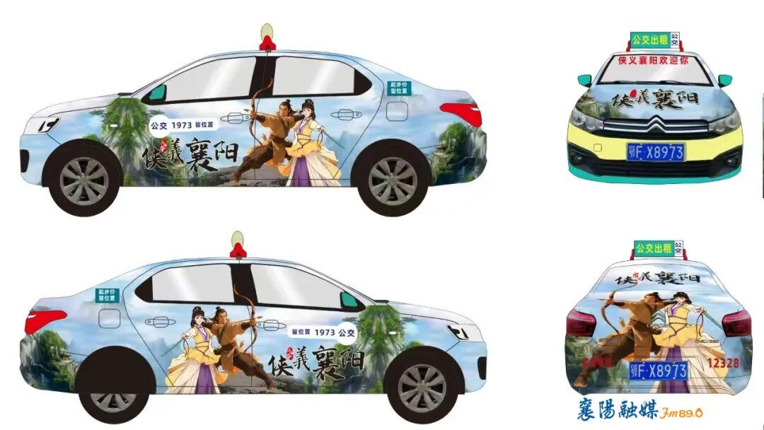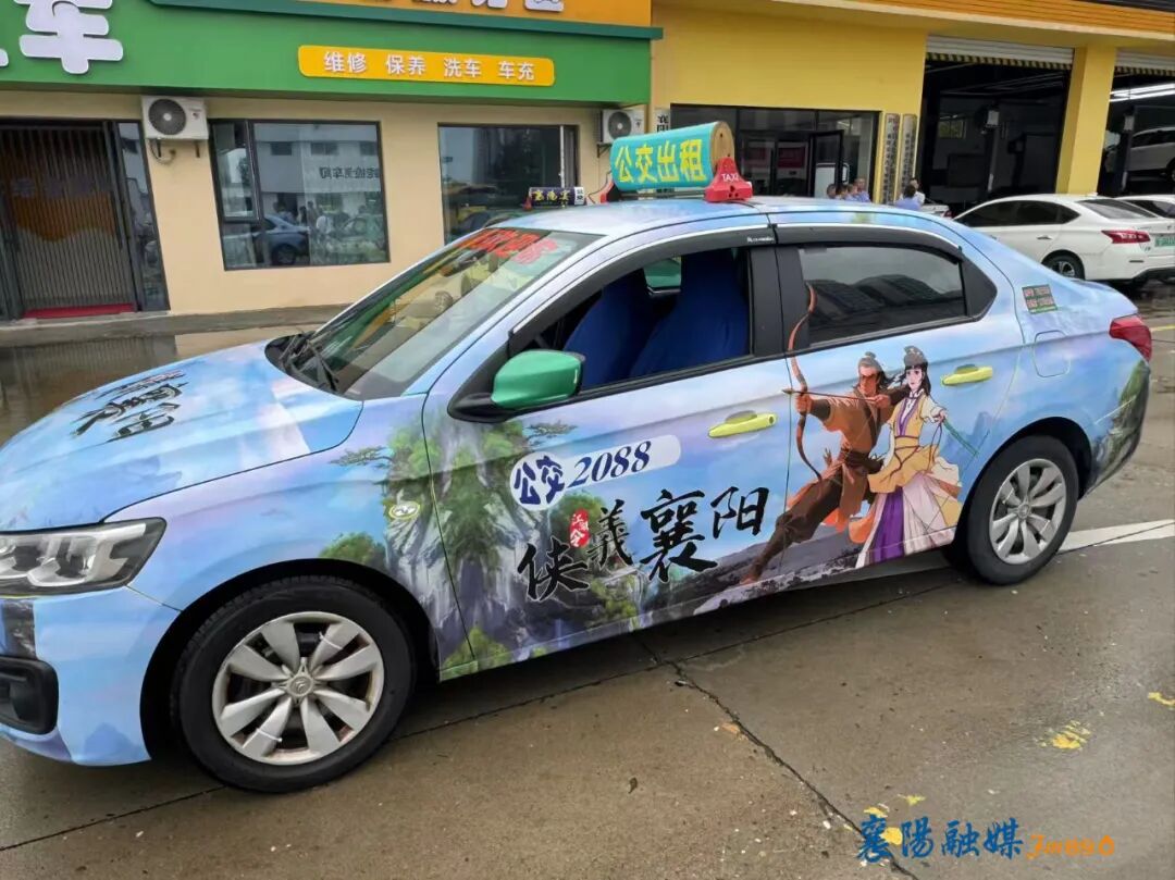 从纸页走进现实的《射雕》名场面,这次的出租车设计直接戳中武侠迷的心巴:主视觉是郭靖披甲执弓、黄蓉持打狗棒立在襄阳城头的画面,像从金庸笔下走出来一样;挡风玻璃上印着“侠义襄阳欢迎你,搭配“郭靖黄蓉”经典形象,坐上车仿佛下一秒就要和“郭大侠”一起守护襄阳。