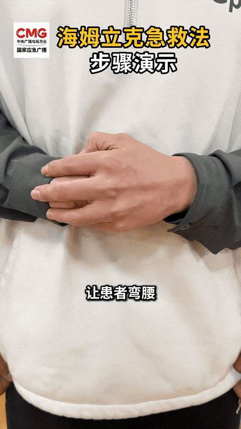 立即采用“海姆立克急救法”——站在患者身后,双臂环抱其腰部,双手握拳,拇指顶住患者上腹部,快速向上冲击,直到异物排出。