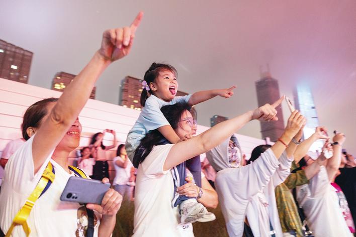 在歌舞《壮丽航程》中,数千架无人机绘成直径400米的巨型牡丹在夜空绽放,“天上一轮才捧出,人间万姓仰头看”的景象从2025长江文化艺术季的开幕式现场,延展到江城各处,惊艳两江三镇四岸,堪称花开倾城。舞台上,各族、各国演员们载歌载舞,共同乘一艘方舟,驶向未来。