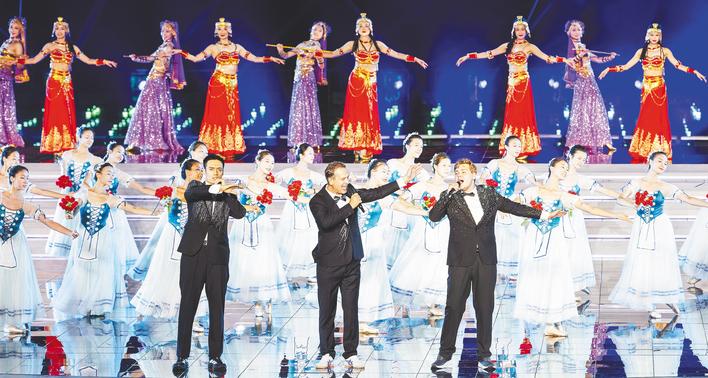 舞台上,来自不同国度的演员们,将世界大河的经典旋律依次唱响,古老埃及的《尼罗河畔的歌声》仿佛携来了沙漠绿洲的微风;印尼民歌《美丽的梭罗河》如热带河水般潺潺流淌;深情辽阔的俄罗斯《海港之夜》,仿佛可见月光下波光粼粼的港湾;北美《红河谷》以质朴悠扬的歌声,带来广袤土地上的真挚故事。当这些各具特色、璀璨动人的文明之声汇聚交融,共同升华为一曲合唱,绘就了一幅“美美与共、天下大同”的人类文明新画卷。