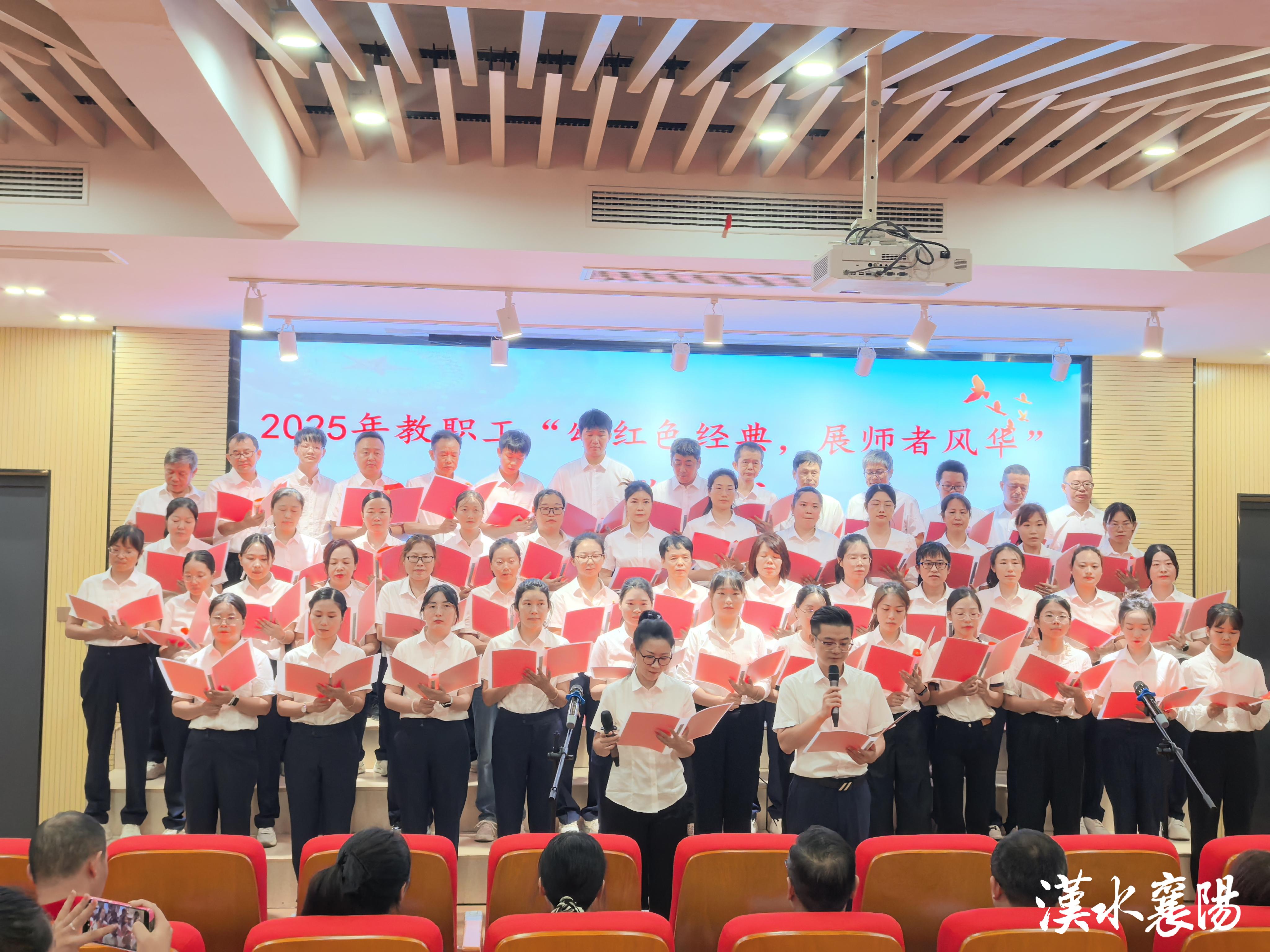 9月8日下午,襄阳市第二十四中学“颂红色经典,展师者风华”教职工红歌、诗朗诵比赛在龙门楼多媒体报告厅举行。 全校教职工组成高一、高二、高三及行管后勤四支代表队,用歌声与诗篇致敬伟大时代。
