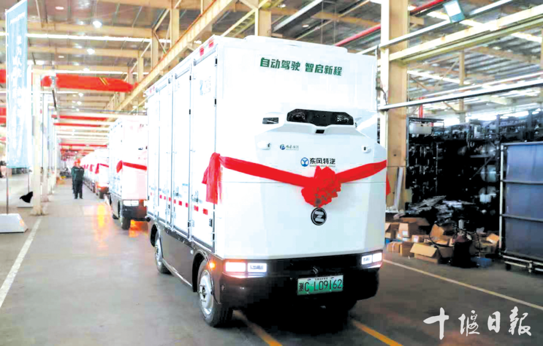 今年4月,十堰经开区龙门工业园内,东风特种汽车有限公司生产的 L4级无人驾驶商用车正式量产。这款车型由纯电驱动、最长续航240公里、最大载重1.8吨,搭载雷达与摄像头,可自主完成避障、路径规划、夜间行驶等自动驾驶,还具备智能温控等技术。