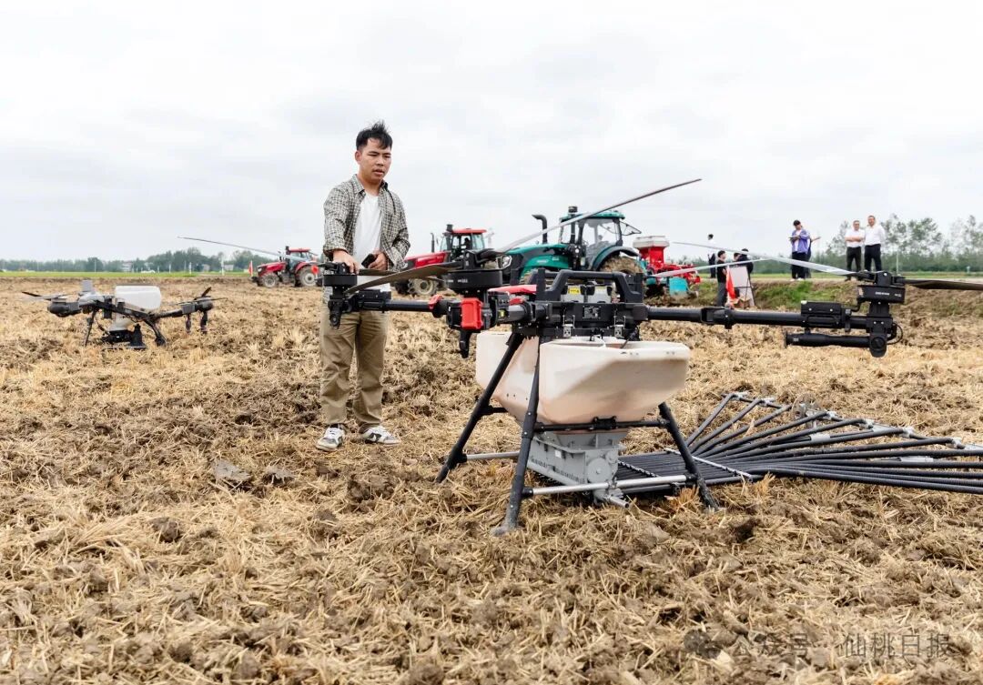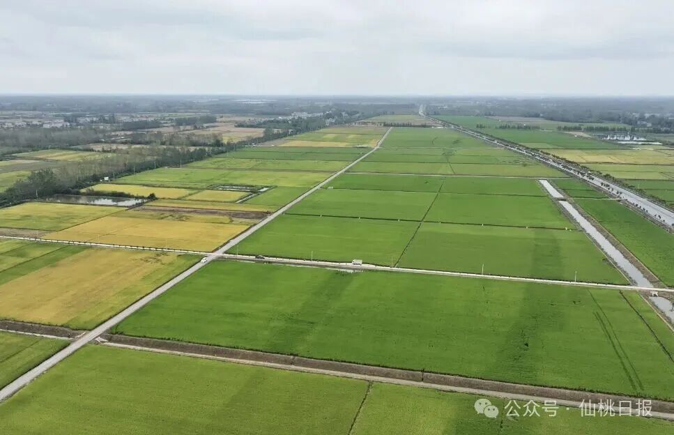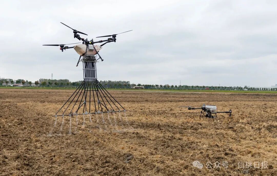 仙桃市三伏潭镇三湾村江汉大米核心种植基地,万亩连绵的水稻田褪去葱郁变得金黄,熟穗低沉,静待丰收。“现在正是‘谷林套播’的绝佳时机。”基地负责人刘孔含说话间,一台无人机盘旋在金黄的稻田上空,均匀地播撒下一粒粒油菜种子。