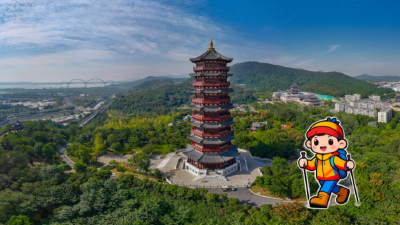 孔明灯"搁浅"城楼,游客小哥用石子解危。(采编:丁波 审核:李丹)